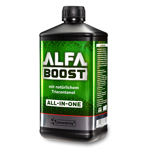 Alfa Boost ist ein natürliches Pflanzenhilfsmittel, das den Fruchtansatz sowie den Ernteertrag der Pflanze steigert. Durch Alfa Boost wird die Reifung beschleunigt, Wachstums- und Blütezeit hingegen verkürzen sich. Es kommt dadurch zu einer Steigerung des Ernteertrages insgesamt. Samen keimen schneller und Stecklinge bilden schneller Wurzeln aus. Die Pflanzen entwickeln schnell und zuverlässig ein gut ausgeprägtes Wurzelsystem, wodurch sie kräftiger und vitaler sind. Die Anfälligkeit für Krankheiten sinkt, da die Pflanzen von Grund auf resistenter sind.